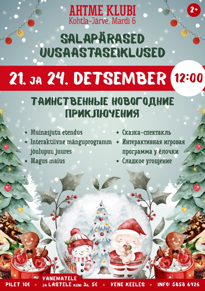 Kavas: Teatraliseeritud show Meeleolukas ja lõbus atmosfäär Kohv, tee ja pidulik meeleolu DJ tantsumuusikaga kuni 01:00 20., 23., 24., 25., 26. ja 27. detsember 2025 Algus kell 19:00 Ahtme Klubi, Kohtla-Järve, Mardi 6 Pilet: 30 € Kohtade arv piiratud! Kuni […]