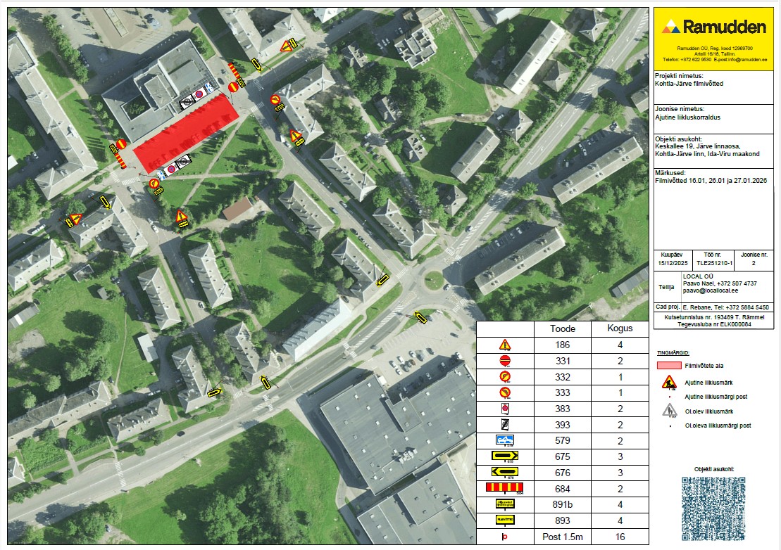 Teade filmivõtetest: Tuuslari tn parkla suletud 16.01.2026