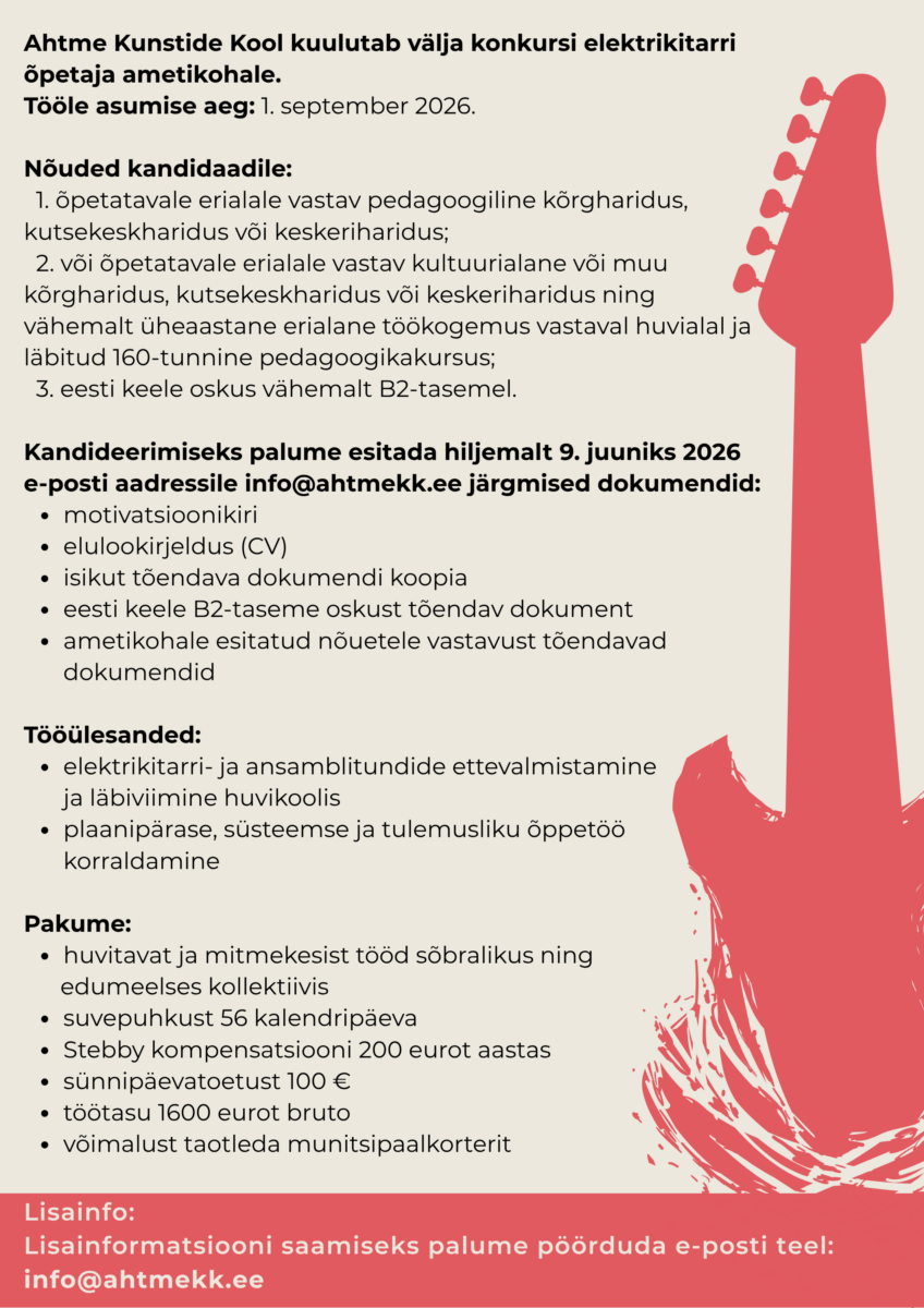 Ahtme Kunstide Kool kuulutab välja konkursi elektrikitarrõpetaja ametikohale