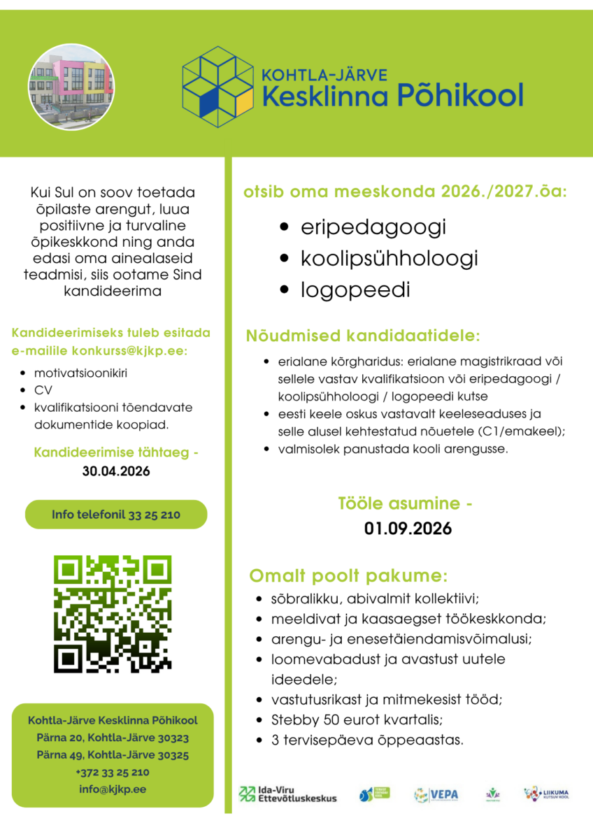 Kohtla-Järve Kesklinna Põhikool otsib oma meeskonda 2026./2027. õa:
