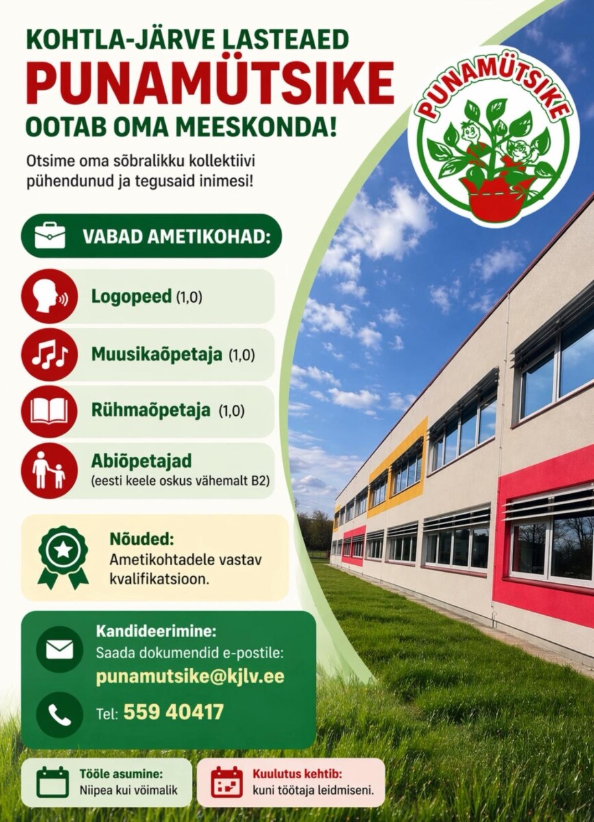 Kohtla-Järve Linnavalitsus kutsub liituma lasteaia Punamütsike meeskonnaga.