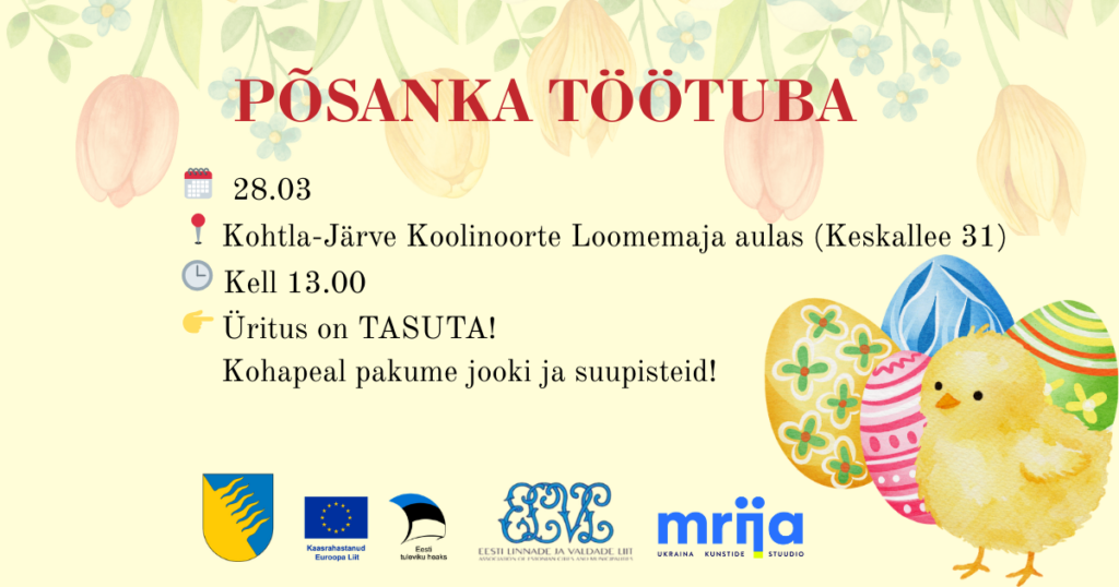 PÕSANKA töötuba – https://forms.gle/pG4Yfy2pqSb6ufsF6 (KOHAD TÄIS / МЕСТ НЕТ)