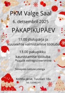 Valges Saalis 6. detsembril kell 11.00 PÄKAPIKUPÄEV, töötuba ja PAKUPIKU kaunistamine.