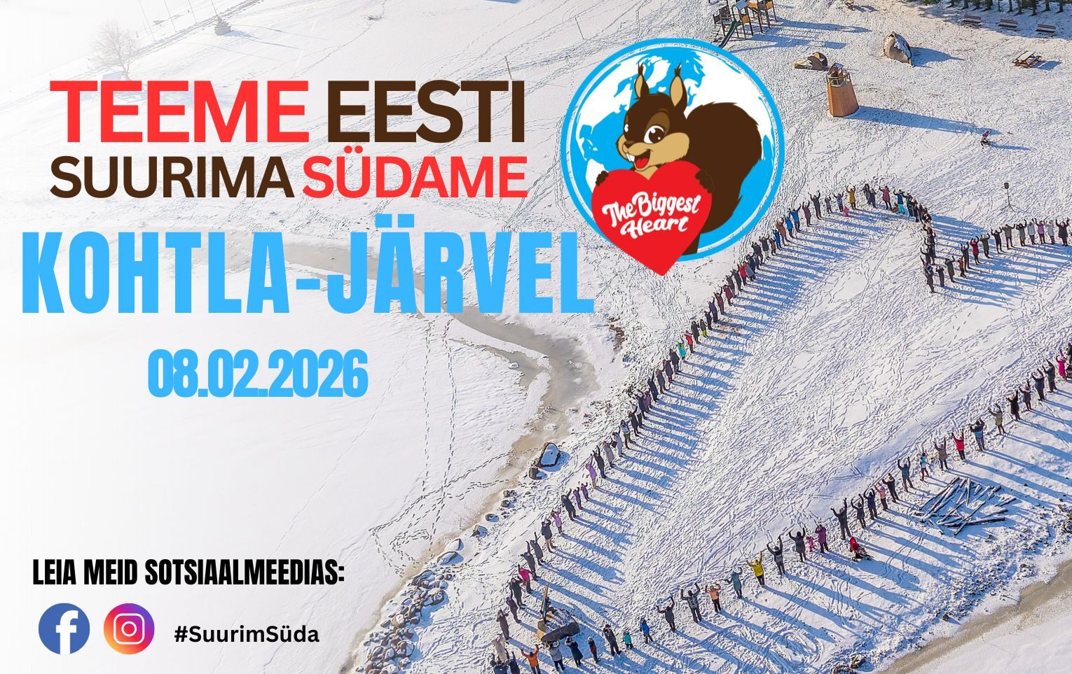 8. veebruaril kell 11.00 koguneme Ahtme linnaväljakule, et olla osa soojast ja ühendavast aktsioonist „Eesti suurim süda“.