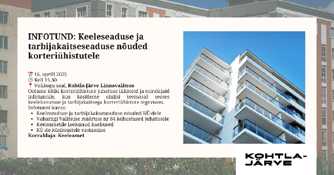 Kutsume teid infotundi, kus tutvustatakse korteriühistute tegevust puudutavaid olulisi õigusnõudeid.