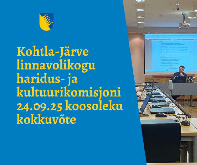 Kolmapäeval, 24. septembril toimus Kohtla-Järve linnavolikogu haridus- ja kultuurikomisjoni selle kuu teine koosolek, mille päevakorras oli kaks punkti. Haridus- ja kultuurivaldkonna...