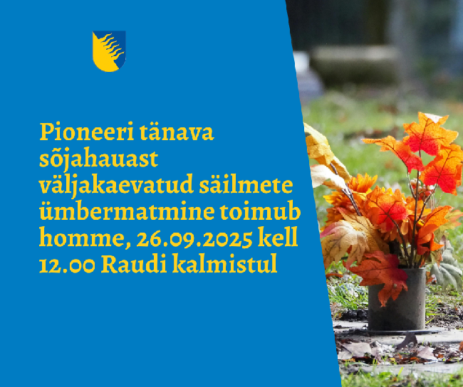 Anname teada, et Kohtla-Järve linna Pioneeri tänava sõjahauast väljakaevatud säilmete ümbermatmine toimub homme, 26.09.2025 kell 12.00 Raudi kalmistul.
