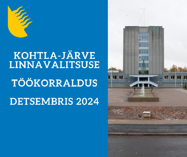 - Сотрудники Кохтла-Ярвеского Управления, включая избранных должностных лиц, по договоренности будут выполнять свои служебные обязанности удаленно (работать из дома) 23, 27 и 31 декабря 2024 года.